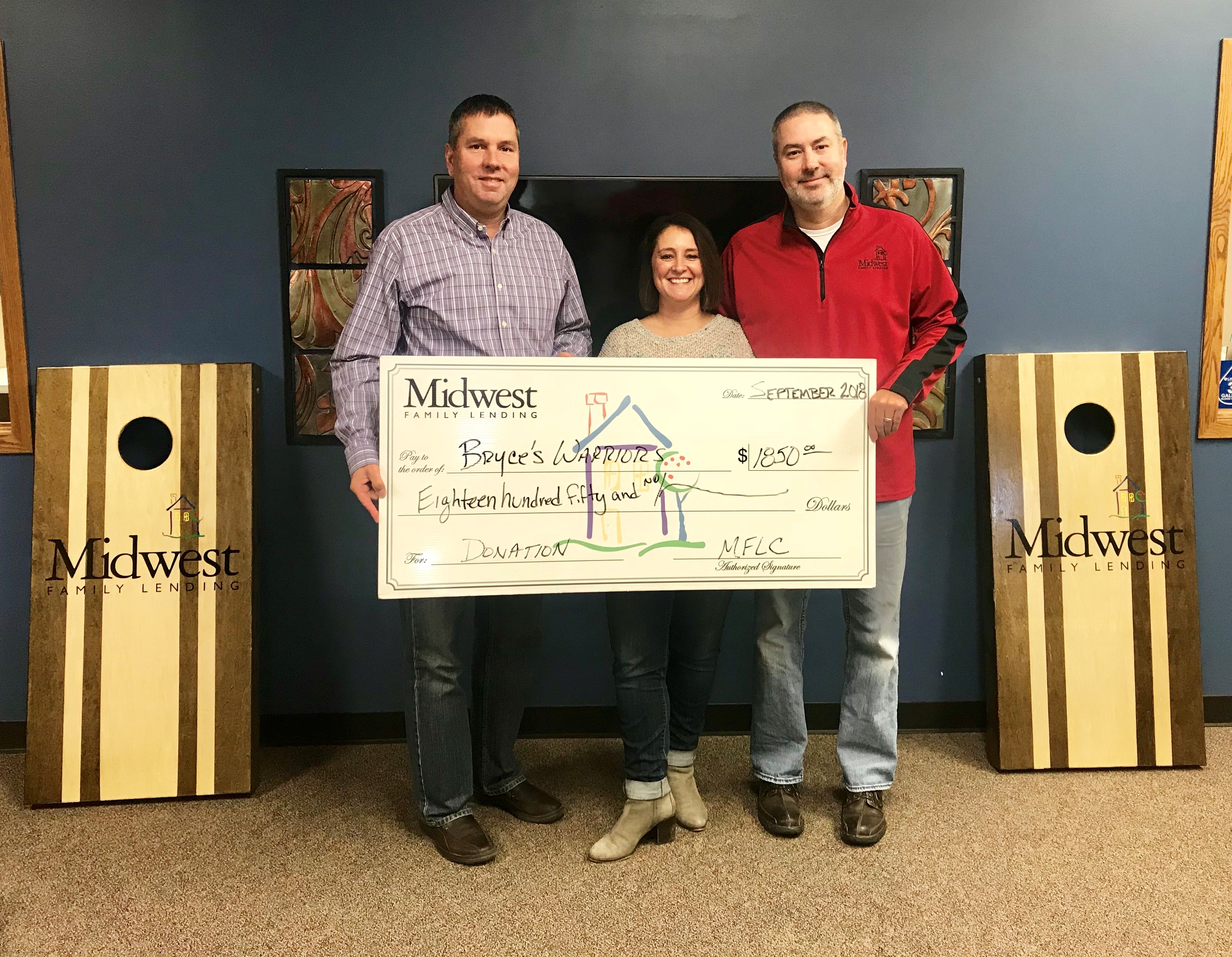 In the month of September, Midwest Family Lending Corp donated $1850 to Bryce’s Warriors Foundation.