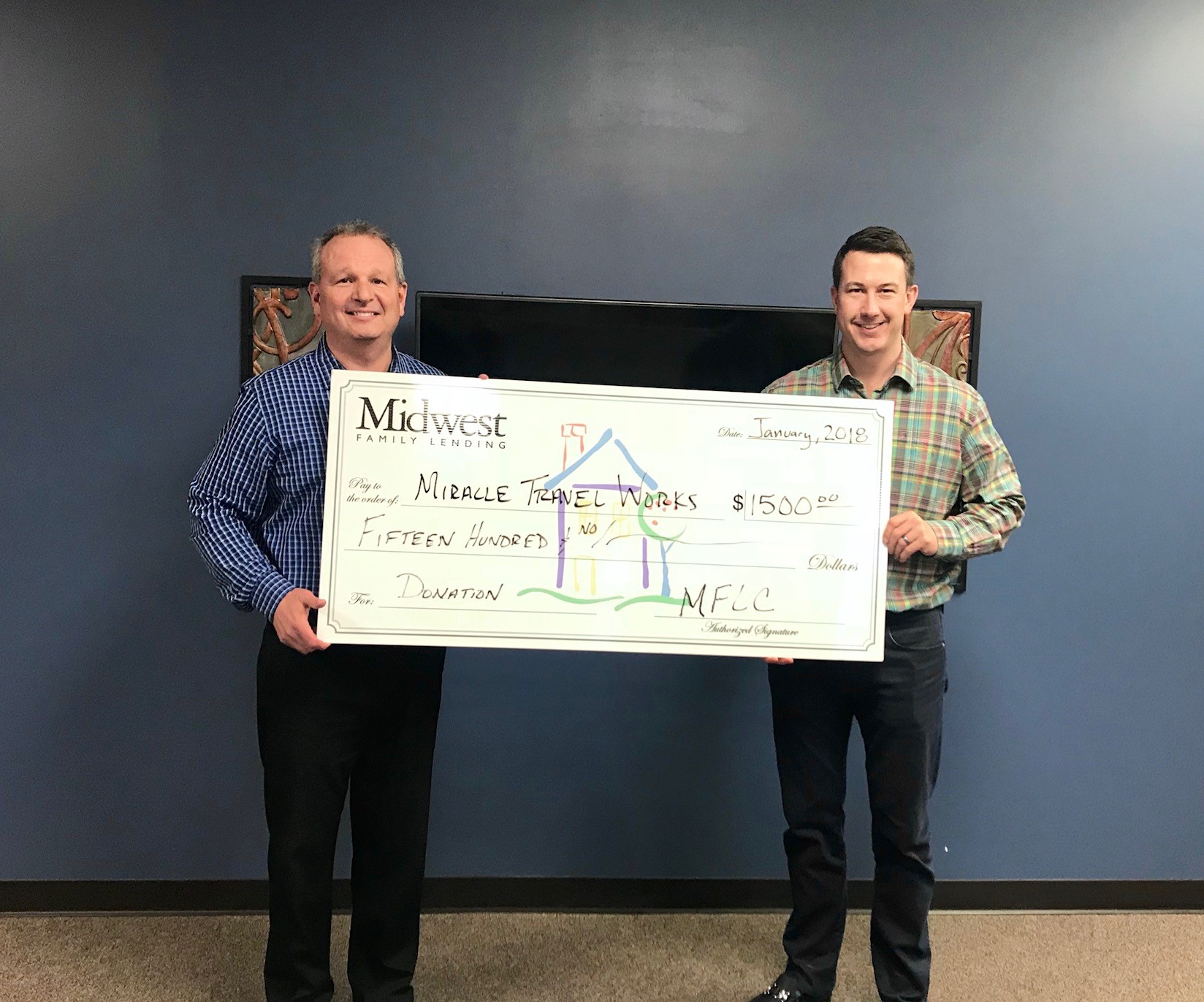 In the month of January, Midwest Family Lending Corp donated $1500 to Miracle Travel Works, for more information please click here.