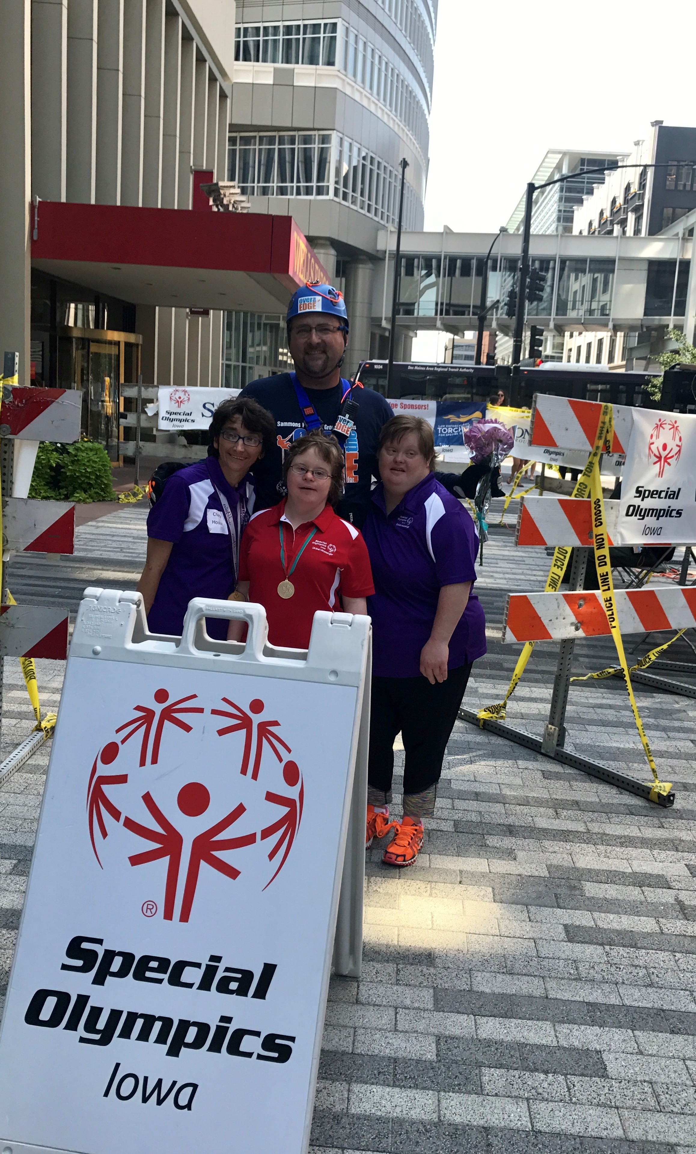 In 1998 I donated $35 to Special Olympics of Iowa. It was a start and this organization has held a special place in my heart ever since. This year Midwest Family Lending, where I am proud to work, made a donation of $1600 to SOIA! Because of this donation, I was asked if I’d like to “Go Over the Edge” (rappel down a 345 foot building) and I absolutely did! Everyone should have the opportunity for the same experience. Not rappelling down the building, but experiencing the unconditional love shown by the athletes at the bottom. The 3 girls in the picture all compete because people are willing to support Special Olympics Iowa. The opportunity to help fund athletes with mental and physical disabilities so they can simply compete and be proud of their accomplishments is humbling. These athletes are a wonderful examples of what sports and life should be about.